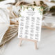 Este gráfico alfabético floral de aquarela é perfeito para um casamento de destino. O brilhante design floral apresenta colônias brancas, verdes e baunilha, rosas, beleza e felicidade inspiradoras. Este sinal pode ser usado para organizar seus convidados em ordem alfabética ou por número de tabela. Esta poster de casamento inclui espaço suficiente para cerca de 150 convidados de casamento. Deixe espaço para mais (ou menos) clicando no botão personalizar e aumente ou diminua o tamanho da fonte. Personalize este sinal com os nomes da noiva e do noivo e a data.