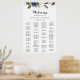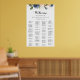 Este elegante gráfico floral de inverno é perfeito para um casamento dourado. O design apresenta belas flores azuis escuras, azuis, marinhos, rosa, pinceladas, douradas e folhagem verde pintadas manualmente, amontoadas em buquês elegantes. Este sinal pode ser usado para organizar seus convidados em ordem alfabética ou por número de tabela. Ele tem espaço suficiente para cerca de 150 convidados de casamento. Deixe espaço para mais (ou menos) clicando no botão personalizar e aumente ou diminua o tamanho da fonte. Personalize este sinal com os nomes da noiva e do noivo e a data.