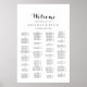Este moderno gráfico alfabético de caligrafia é perfeito para um casamento rústico. O design simples e elegante apresenta a tipografia de scripts clássicos e ricos em preto e branco. Este sinal pode ser usado para organizar seus convidados em ordem alfabética ou por número de tabela. Ele tem espaço suficiente para cerca de 150 convidados de casamento. Deixe espaço para mais (ou menos) clicando no botão personalizar e aumente ou diminua o tamanho da fonte. Personalize este sinal com os nomes da noiva e do noivo e a data.