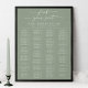 Poster Gráfico de Assentos Alfabéticos Verdes Folha