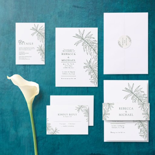 Forest Green Simple Botanical Leaves Wedding Criado por Amour Paperie