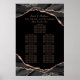 Adicione seu próprio toque especial a este elegante design com tons clássicos de preto, branco e cinza agata com veias metálicas de folha de ouro rosa. Este design apresenta os nomes da noiva e do noivo juntamente com as palavras "Coma, Beba e Seja Feliz" e "Por favor, encontre seu assento". Modelos são fornecidas para até sete mesas com até oito nomes por mesa.