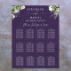 Gráfico de assentos de casamento elegante com flora verde e floral roxo apresentando nomes em estilo característico, este gráfico de assentos chic e elegante pode ser personalizado com suas informações em letras modernas. Projetado por Thisisnotme©