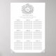 Cinza escura e círculo branco da folha desenhando desenho plano de mesa de monograma. Edite este gráfico de mesas de assentos de casamento com seus próprios assentos e nomes de convidados. O círculo original moderno das folhas desenhado por Sarah Trett para www.mylittleedenweddings.com exclusivamente no Zazzle.