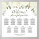Este lindo gráfico de 9 mesas tem espaço para 90 convidados com 10 assentos por mesa. Apresenta um design floral rústico de bolho com rosas pintados manualmente de aquarelas e flores em tons de marfim, branco e creme, cercados por folhas verdes de sábio e folhagem de jardim. O título diz: Bem-vindo! Por favor, encontre sua mesa escrita em uma caligrafia elegante. Há espaço para os nomes do casal e da data do casamento abaixo. Uma maneira maravilhosa de dar as boas-vindas aos seus convidados à sua recepção de casamento, enquanto os ajuda a encontrar os seus lugares.