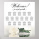 Esta tabela floral moderna de assentos de casamento ostenta 16 mesa com um design romântico com marfim, branco ou rosa colorido de creme estacionado ao seu lado, refletindo em uma piscina de água. O título, "Bem-vindo! Por favor, Encontre sua Mesa," é elegantemente escrito em letras de escrita, e há espaço amplo na parte inferior para os nomes dos casais e data do casamento. O gráfico acomoda 160 convidados, com 10 assentos atribuídos a cada mesa, acrescentando elegância, classe e estilo à sua recepção de casamento e, ao mesmo tempo, permitindo que os convidados encontrem seus assentos de forma conveniente.