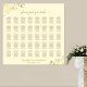 Este simples gráfico de assentos de casamento apresenta um elegante e elegante design com um título de caligrafia dourado em um fundo de marfim ou creme com caracóis florais de folha de ouro de ornamentado e espirais nos cantos. O layout tradicional tem atribuições de assentos para 400 convidados em 40 mesas com 10 lugares por mesa. Há espaço para os nomes do casal e da data do casamento no fundo. Na moda, sofisticado, e mostre este gráfico de assentos irá adicionar beleza e graça à sua recepção, enquanto fazer, é fácil para os seus convidados encontrarem as suas mesas.