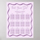 Mantenha-se organizado com este Poster de Gráfico de Casamento de Casamento de Moldura Roxo Moderno. Apresentando um fundo roxo claro e borda ondulada roxa em negrito, o design exibe 12 mesas com nomes dispostos exatamente abaixo de cada cabeçalho. "Find Your Seat" (Encontre seu assento) é exibido no topo em um roteiro roxo manuscrito, com seus nomes e data de casamento mostrados abaixo. Disponível como impressão profissional ou download instantâneo.