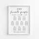 Poster moderno de assentos de casamento baixável para até 10 mesas com "Nossas Pessoas Favoritas" em um roteiro de chic e uma simples tipografia e seus nomes e data de casamento juntos por um coração. Selecione a opção de download digital a ser editada com alterações de última hora e impressão localmente.