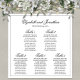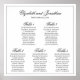 Este gráfico de assentos ajudará seus convidados a encontrar suas mesas na sua recepção de casamento. O simples design preto e branco apresenta um script antigo para os nomes do casal, assim como os números de tabela. Perfeito para adicionar um toque de classe.