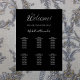 Um clássico fundo negro. Personalize e adicione o nome da noiva e do noivo, adicione os nomes dos convidados. Texto branco.