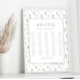 Transforme a decoração do casamento com o charme eterno da nossa elegante poster de assento romântico clássico. Com folhas de eucalipto verde empoeiradas e flores brancas, esta poster adiciona um toque de sofisticação ao seu casamento no jardim de primavera. Explore este detalhe requintado para um assento memorável e organizado.