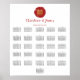 Simples e elegante, este gráfico de assentos de casamento é uma maneira fácil de direcionar os convidados para seus assentos designados. O design apresenta um círculo pintado de vermelho em torno do símbolo de dupla felicidade em dourado. O texto para o casal feliz e "por favor, tome seu assento" combina com a cor do círculo e é totalmente personalizável. Este gráfico de assentos é projetado para listar os convidados em ordem alfabética, mas pode ser facilmente alterado para ser baseado no número da mesa. Parabéns aos recém-casados!
