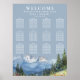 Este elegante gráfico de assentos de casamento em aquarela com flores silvestres montanhosas em azul desbotado pode ser personalizado com suas informações em tipografia moderna. Projetado por Thisisnotme©
