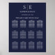 Gráfico de assentos de casamento em azul marinho e dourado com seu monograma, este gráfico de assentos elegante e sofisticado pode ser personalizado com suas informações em letras modernas. Criado por Thisisnotme©