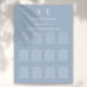 Gráfico de assentos de casamento em azul poeira e dourado com as iniciais do seu monograma, este gráfico de assentos chique e elegante pode ser personalizado com suas informações em letras modernas. Criado por Thisisnotme©