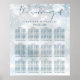 Um gráfico de assentos de casamento chique de inverno com delicados flocos de neve caindo sobre seus nomes personalizados, data especial e detalhes de assentos da celebração em um fundo de geada de inverno. Criado por Thisisnotme©