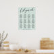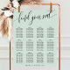 Dê as boas-vindas aos seus convidados com este elegante gráfico de assentos de casamento verde menta pastel. Com um design minimalista e uma fonte moderna que diz "encontre seu lugar", este gráfico de assentos é perfeito para um casamento sofisticado e elegante. A cor suave e o layout limpo proporcionam uma aparência refinada e organizada, garantindo que seus convidados encontrem facilmente seus lugares. Personalize com seus nomes e arranjos de mesa para criar uma adição única e coesa à decoração do seu casamento. Este gráfico de assentos acomoda até 12 mesas, tornando-o ideal para uma celebração bem planejada e elegante.