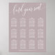 Dê as boas-vindas aos seus convidados com este elegante gráfico de assentos de casamento roxo lavanda empoeirado. Com um design minimalista e uma fonte moderna que diz "encontre seu lugar", este gráfico de assentos é perfeito para um casamento sofisticado e elegante. A cor suave e o layout limpo proporcionam uma aparência refinada e organizada, garantindo que seus convidados encontrem facilmente seus lugares. Personalize com seus nomes e arranjos de mesa para criar uma adição única e coesa à decoração do seu casamento. Este gráfico de assentos acomoda até 12 mesas, tornando-o ideal para uma celebração bem planejada e elegante.