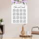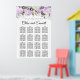 Lindos rosas roxos e verdes e balançando bordas cries no topo e no fundo deste gráfico floral. Os nomes dos casais de casamento são escritos em uma fonte clássica. Este elegante quadro de assentos é parte da coleção Violette que contém sinais, programas, menus, cartões de lugar e decoração de mesa que permitem personalizar fácil e financeiramente a sua cerimônia de casamento e recepção.
