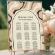 O "Gráfico de Assentos de Casamento de Arcos Retro Rodoviários" é uma peça de arte funcional que fornece à organização um toque chic. O pano de fundo do creme suave é justaposto com um padrão de espiral surpreendente em tons de rosa, preto e ouro, encapsulando um charme de safra com uma reviravolta moderna. O design arquitetado enquadra elegantemente os nomes dos casais e as disposições de assentos, guiando os hóspedes para suas mesas designadas com facilidade e estilo. Este assento é a adição perfeita a um casamento que celebra tanto a beleza eterno do passado como o entusiasmo de um futuro compartilhado.
