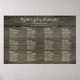 Fundo de grãos de madeira escura, poster de assentos de casamento. Sede para até doze mesas, com oito (ou menos) convidados em cada um. Este gráfico de assentos de 23 x 36 polegadas tem texto esbranquiçado em ambos os scripts (para números) e fontes impressas para os nomes dos convidados. Nomes de noiva e noivo no topo em fontes elegantes e modernas, escritas à mão com uma ou duas linhas para data e local das Mesas de celebração são listados horizontalmente, mas isso é fácil de mudar alterando os números usando as modelos. Para menos mesas, simplesmente exclua seções conforme necessário, mantendo a aparência simétrica. Atualize o papel, se desejar.
