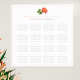 Simples casamento branco e laranja coral, por favor, encontre seu lugar, plano de assento. Este plano de gráfico de mesa é um clássico limpo é fácil de ler 16 layout de mesa em cinzas muito escuras e laranja de coral com uma pintura de cor d'água rosa de chá híbrido botânico. Perfeito para um casamento de rosa ou jardim ou evento oficial sentado. Edite com seus próprios nomes e detalhes de casamento ou evento. Outros itens correspondentes estão disponíveis. Pintura manual original de aquarela e design por Sarah Trett para www.mylittleedenweddings.com