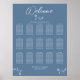 Este design apresenta um gráfico de assentos de boas-vindas de casamento floral, número da mesa de assentos dos convidados, uma caligrafia elegante e moderna, uma fonte tipográfica caprichosa, um quadro de pôster de recepção de casamento, uma decoração de recepção de casamento moderna e elegante, uma folhagem botânica verde, com tema de cor azul verdadeiro ao crepúsculo, um fundo azul simples com texto branco, para o gráfico de assentos de recepção de casamento