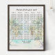 Este elegante e belo quadro de assentos de mesa de casamentos de aquarelas mostra uma praia, céu azul e palmeiras. O texto combina o script manuscrito e as fontes sans serif para uma aparência na moda e moderna. Isto é perfeito para uma praia de verão ou um casamento de destino tropical.