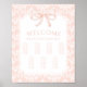 Explore a sofisticação com o nosso elegante cartaz de assento de chá de bebê pré-desidratada poster, adornada com uma charmosa fita de arco rosa pastel contra um pano de fundo da cor damasco clássica. Perfeito por receber convidados para comemorar com estilo e refinamento.