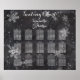 Gráfico de assentos de mesa do quadro do quadro de gelo moderno dos flocos de neve do inverno. Na moda, quadro negro elegante e original com fundo branco de flocos de neve. Um tema de casamento elegante preto e branco perfeito para a terra maravilhosa do inverno, tema de natal. O texto é totalmente personalizável