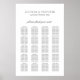 Poster de assentos de casamento preto e branco elegante com um design simples e mínimo com os nomes da noiva e do noivo em uma fonte serif tradicional e o meio e sobrenomes em um roteiro elegante de caligrafia. Um estilo clássico que é perfeito para um casamento formal.
