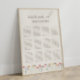 Este simples, moderno e vibrante gráfico de assentos de flores silvestres é perfeito para o seu 'eu do', não importa a estação. As elegantes flores silvestres espaçadas são charmosas e simplistas. Aproveite seu casamento em primavera, verão, outono ou inverno com nosso sofisticado poster colorido e mínimo de assentos de casamento - um design totalmente personalizável para ajudar seus convidados a se sentarem na mesa, através de um alternativo para conselhos de espuma, de orçamento amigável, também disponível para download digital instantâneo!