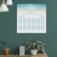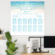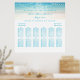 Gráfico de assentos da PixDezines, com oceano azul turquesa e praia de areia branca, cordas de luzes e silhueta de um candelabro branco. Os designs da PixDezines permitem que você edite qualquer elemento do design.