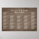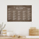 Poster de assentos de madeira castanha. A madeira russa parece com muitas seções de texto branco impresso. Assentos na recepção, indicando os respectivos nomes por ordem alfabética ou por número de tabela. Faça upgrade para um tipo de papel mais espesso.