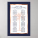 Adicione seu próprio toque especial a este elegante design com roteiro moderno e texto azul marinho, incluindo uma silhueta de palmeira de ouro-rosa artístico com uma estrutura de cobre rosa-ouro metálica. Este design apresenta os nomes da noiva e do noivo juntamente com as palavras "Coma, Beba e Seja Feliz" e "Por favor, encontre seu assento". Modelos são fornecidas para até oito mesas com até 10 ou 11 nomes por mesa.