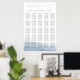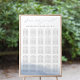 Gráfico de assentos de hóspedes em cinzas escuras e branco com aquarela litorânea detalhando ao longo dos recursos de baixo "por favor encontre seu assento" no topo em letras elegantes de script de caligrafia, com suas tarefas de mesa de hóspedes embaixo. Espaço previsto até 25 mesas.