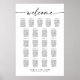 Plano Moderno de Casamento. Sinal de boas-vindas. Gráfico de Assentos Simples Personalizado para 210 convidados (21 mesas). Basta clicar no link personalizar mais, mostrado na área de personalização de texto à direita, e escolher seu fundo de cor personalizado. Este poster de placa faz com que seja rápido e fácil criar acréscimos incríveis à decoração do casamento. Os sinais podem ser ampliados, há muitos tamanhos a serem escolhidos, assim como opções de enquadramento e correspondência personalizados.