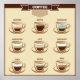 Gráfico de café visual com espresso, doppio, americano, cappuccino, latte, macchiato, glace, mocha e cafés irlandeses.
