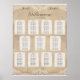 Um lindo gráfico de assentos de Recepção de casamento ou poster de plano de mesa com a aparência de canvas de vintage como pano de fundo. No topo da "canvas", tanto no topo como no fundo, está um bonito padrão de cor de marfim ou creme pálido. No centro do gráfico de assentos encontram-se onze caixas individuais que se assemelham a papel de pergaminho de vinheta que rasgou bordos. A sensação geral desta poster de plano de mesa é elegante e rústica. Esta Versão do gráfico está definida para acomodar 11 mesas com até 10 convidados por mesa. Itens correspondentes estão disponíveis no compro. Use os links "enviar mensagem" ou "entrar em contato" se precisar de ajuda para personalizar.