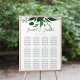 O gráfico de assentos de casamentos corresponde à nossa coleção Floresta Selvagem, com folhagem botânica verde-aquática no topo, com os seus dados de assentos de hóspedes por baixo.