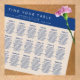 Fácil de personalizar, este gráfico de assentos de mesa Marselha Bleu 24 pode acomodar sua recepção de casamento de 240 convidados. A design elegante e simples deste poster de plano de mesa de casamento se dá bem aos temas de casamento ultra modernos, assim como às celebrações mais casuais, enquanto a paleta colorida de azul brilhante marinho, combinada com náusea cremosa, é perfeita para todas as estações, desde primavera e verão até outono e casamentos no inverno. Personalize este poster de assentos de casamento personalizado para o seu casamento de 240 pessoas ou outro evento especial.