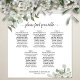 Este quadro elegante de 5 mesas inclui atribuições de mesa para 50 convidados com 10 lugares por mesa. O rústico design de música da boêmia apresenta as folhas de eucalipto pintadas manualmente com aquarela e folhagem em tons de menta, musgo e sábio verdes. O título da caligrafia do roteiro lacy diz: Por favor, encontre sua mesa, e os nomes do casal e da data do casamento aparecerão na parte inferior.
