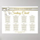 Torne sua recepção de casamento bonita com este assento. Projetado como parte de nossa Suite de Casamento de Fita Branca e Dourada, ele apresenta um design simples, mas elegante, com texto dourado sobre fundo branco, com fita branca e trim dourado. Este gráfico mostra as atribuições de mesa para que seus convidados tenham facilidade em encontrar a mesa certa.