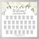 Este gráfico floral de 30 mesas com aquarelas apresenta um design rústico de bolo com rosas, flores e flores em tons de marfim, branco e creme, juntamente com folhas verdes de eucalipto e folhagem de jardim. O título diz "Bem-vindo! por favor, encontre sua mesa" na caligrafia de scripts antigos. O quadro de lugares tem espaço para 300 convidados com 10 lugares por mesa. Há espaço para os nomes do casal e da data do casamento no fundo. Uma bela maneira de receber seus convidados na sua recepção enquanto fazer que seja fácil para eles encontrar seus assentos.