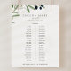 Este moderno assento de mesa de banquete de oliveira é perfeito para um casamento de boho. O design rústico, porém elegante, apresenta folhas botânicas de cor aquática simples e azeitonas pretas num pequeno galho com um toque mediterrânico clássico. Esta placa de casamento inclui espaço suficiente para cerca de 40 convidados. Deixe espaço para mais (ou menos) convidados clicando no botão "personalizar" e diminuindo ou aumentando o tamanho da fonte. Além do posicionamento de cada convidado, personalize este cartaz com os nomes da noiva e do noivo e a data do casamento.