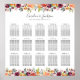 Esta tabela floral rustical de assentos acomoda 15 mesas com até 10 convidados em cada mesa. As flores bonito do outono criam uma fronteira no topo e no fundo do gráfico. Personalize com os nomes dos casais no topo e adicione os nomes dos convidados de casamento sob cada cabeçalho de mesa. A decoração de casamento e a papelaria estão disponíveis na nossa Coleção de Casamentos outono do Autumn Elegance.