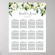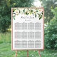 O gráfico de assentos de casamentos corresponde à nossa coleção Floral de Alabastro, que inclui um verde botânico de cor aquática e flores brancas que enquadram os seus dados de assentos.