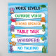 Uma poster divertida para controlar o nível de voz em sua sala de aula. Disponível em diferentes opções de tema, visite minha loja para vê-las todas!