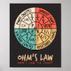 Esta roda das fórmulas de Ohm o ajudará a memorizar as fórmulas usadas para calcular a potência e a resistência, a corrente e a voltagem. A Lei de Ohm é uma equação fundamental em eletrônicos, na química e na física, que dá a relação entre voltagem e corrente em um resistor.